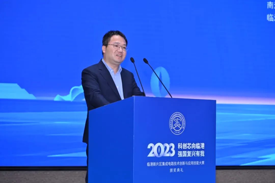 上海裕芯科技副總經理付春國代表大會評委講話,提出:2023年臨港新片區集成電路技術創新與應用技能大賽注重考察參賽項目的技術創新性、市場以及產業相關性等方面的表現,目的是為增強臨港集成電路企業技術創新動力,希望通過本次大賽,進一步促進臨港新片區集成電路產業資源集聚,加速產業成果轉化。